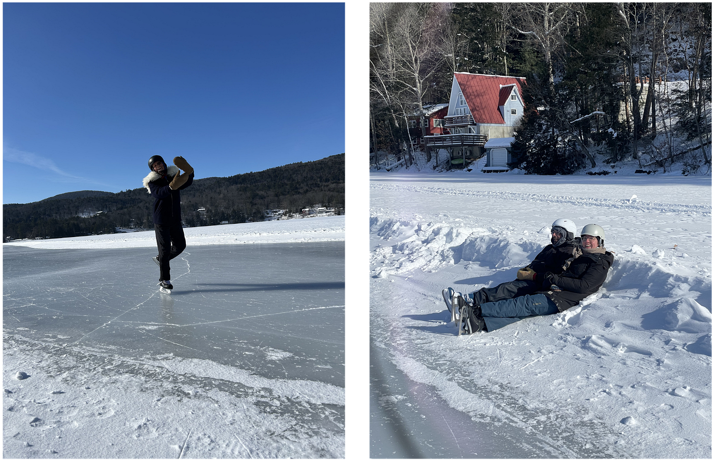 Goofin out on the ice at Lake Morey with my dears Josh & Nicole on a sunny, but windy day. This year we took the risk of concussion more seriously & got helmets. Clashes with my whole sheepskin collar aesthetic, but it’s worth it, I think?