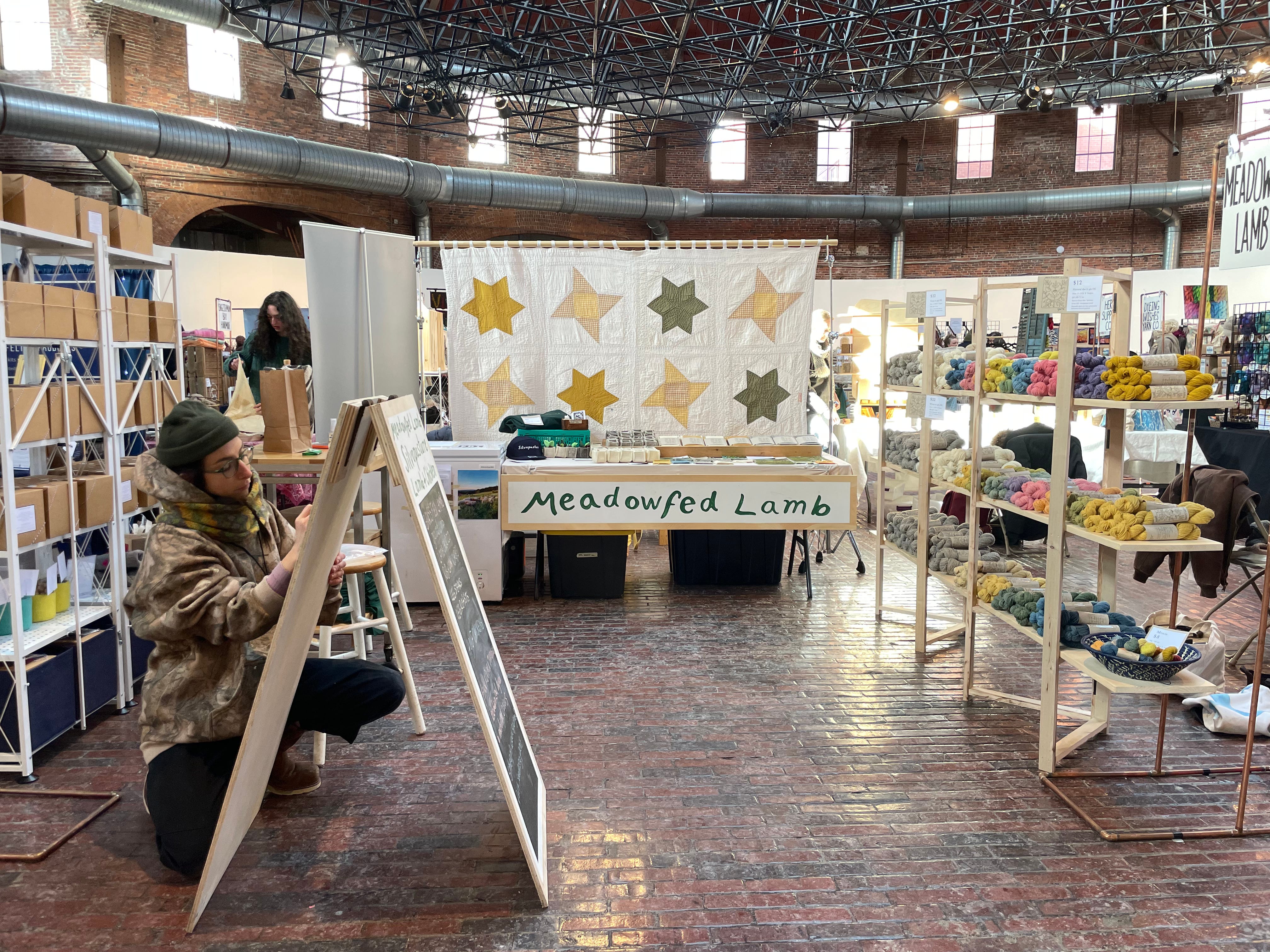 I got to play shopkeep with my dear & deeply talented friend, Rachel of Meadowfed Lamb at the New England Farm & Fiber Festival, and I had so much fun getting to talk about how amazing she is to everyone and help them choose colors for their knitting projects — 10/10 experience, even in -9* setup temps!