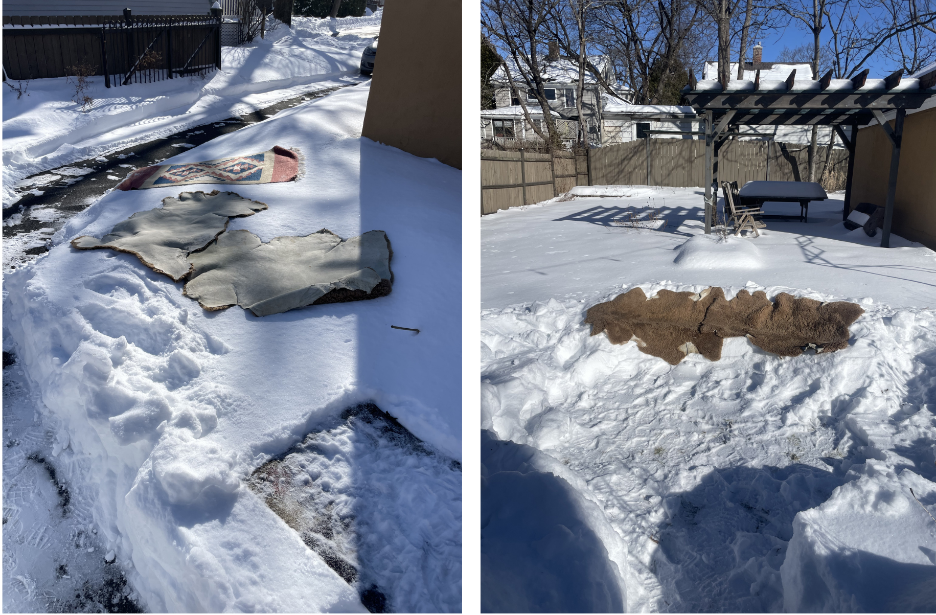 To my great delight, the snow really stuck around this year! I took the opportunity to clean our wool rugs (L), and make a “snow couch” (R). It gets perfect sun for about 1 hour per day, which is when you can find me drinking a dandelion latte and almost forgetting the temps are sub 20*, lol.
